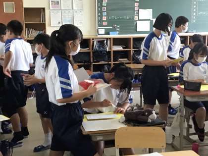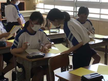 学級の時間に、合唱コンクールで歌う曲の楽譜を作成していました。