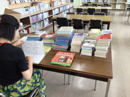 図書館司書の先生が、新刊の整理をしてくださっていました。