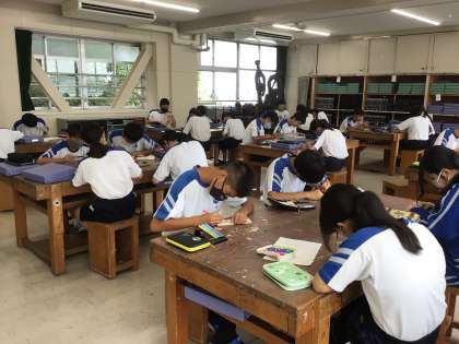 デザイン画をもとに、丁寧に彫り進めていました。