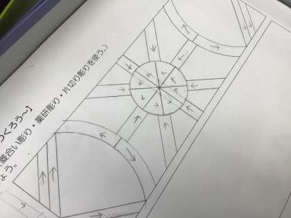 デザイン画には、彫刻刀で彫る方向まで描かれていました。