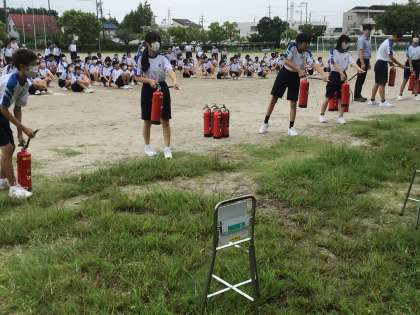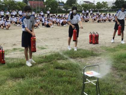 3年生は、水消火器で消火活動訓練を行ました。