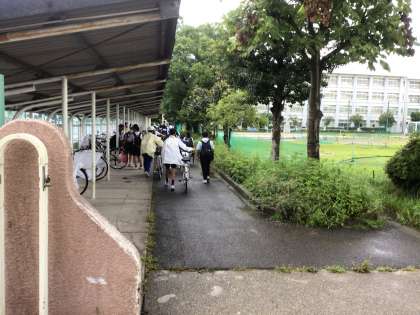 登校時、雨は止んできてくれました。