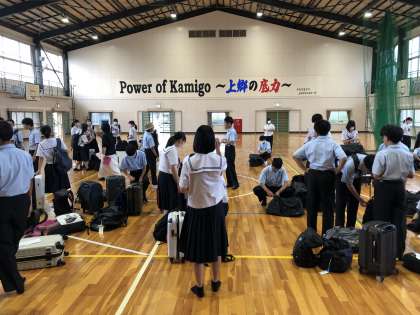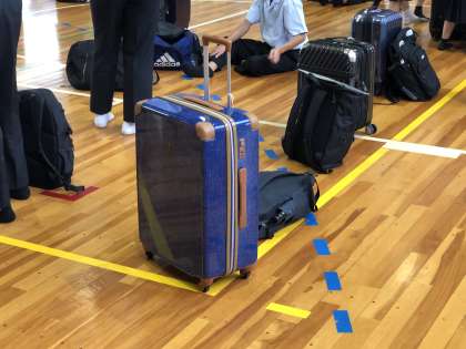 いよいよこの日がやってきました。修学旅行の出発です。集合時間よりもかなり早くから多くの子が集まってきています。大きな荷物に、3日間の旅行への希望が詰まっているようです。ある生徒に聞くと、昨日はよく眠れたそうです。ワクワクして眠れないという事はなかったようですが、中にはそういう子もいたかもしれません。まもなく修学旅行出発です!
