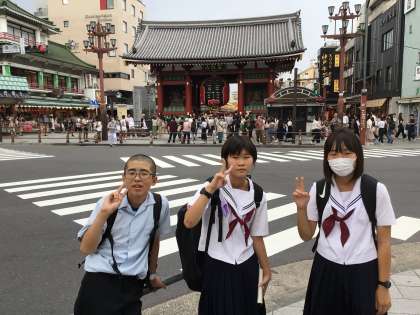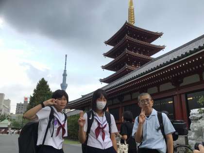 特別支援学級は築地から浅草に移動してきました。東京のシンボルの1つ雷門を前に写真を撮影しました。仲見世の賑わいにみんな驚いています。コロナが明けて、外国人の姿もたくさん見られます。以前の賑わいが戻ってきました。スカイツリーと五重塔、新旧2つの塔を1枚の写真を止められるひそかなフォトジェニックスポットでも写真を撮影しました。