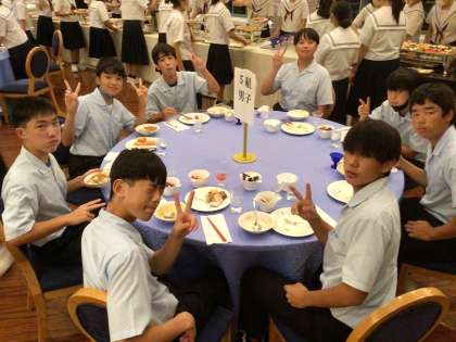 4、5組は、オーシャンブルーと言う会場で食事をとっています。とてもおしゃれな部屋です。さすが四ツ星ホテル。