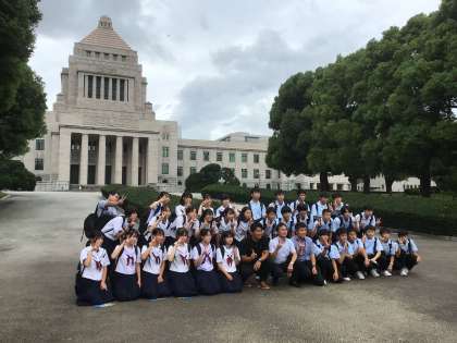 その後、テレビでもよく見る本会議場を見学し、学級写真を撮りました。