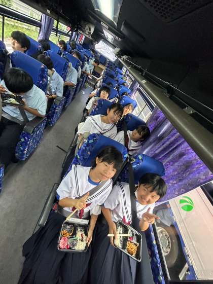 バスの中でお弁当を食べました。
