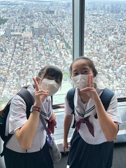 4組、スカイツリーに登った生徒ですね。 眼下の街並が小さく見えますね。