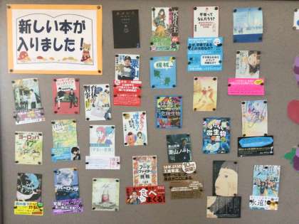 図書館司書の先生が、また新刊が入ったということで、廊下の掲示や新刊コーナーを整備してくださいました。