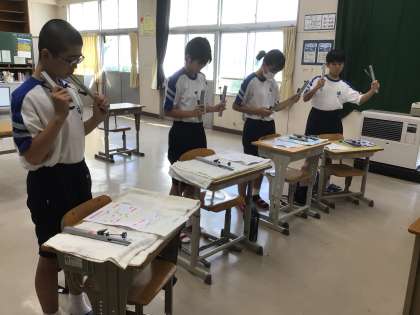 1・2学級の生徒が文化祭に向けて、トーンチャイムの練習をしていました。