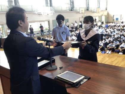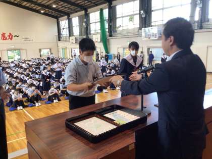 前期学校クラスのために尽力した生徒に贈られる上中賞です。