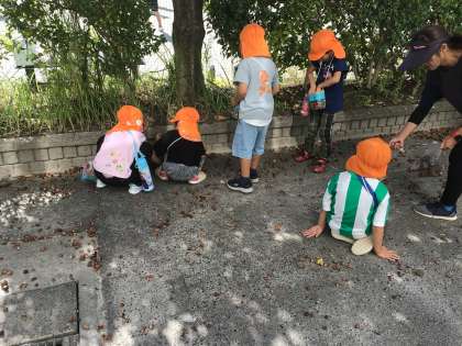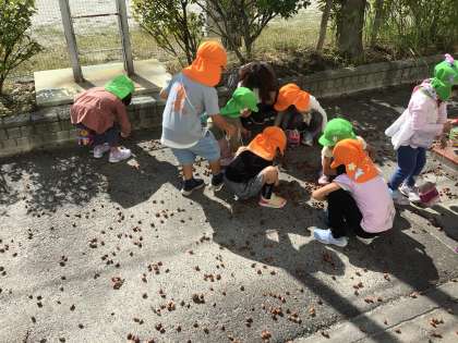 たくさんのどんぐりを拾い、「帰ったら車を作る」とか「コマを作る」と言って、楽しんでいました。