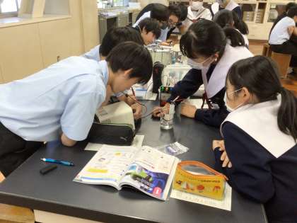 理科の時間、いろいろな水溶液は電気を通すのかどうかを実験で調べていました。