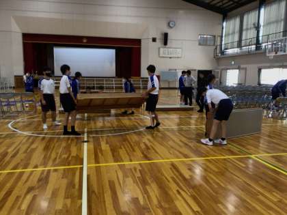 掃除の時間に、会場の準備をしてくれていました。 ありがとう。