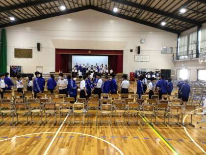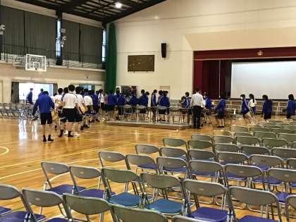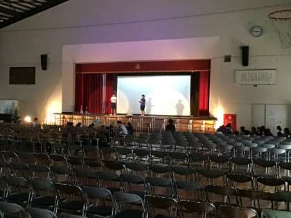 下校後、有志発表者とスタッフがリハーサルをしています。
