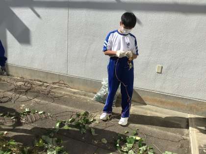芋のつるは、葉っぱを落としてリース作りに使うそうです。