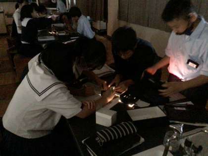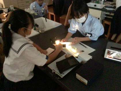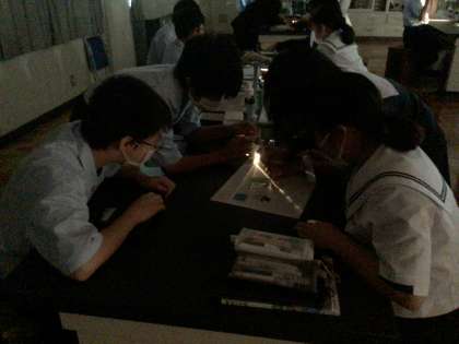 理科室に暗幕が閉められ、真っ暗になっていました。