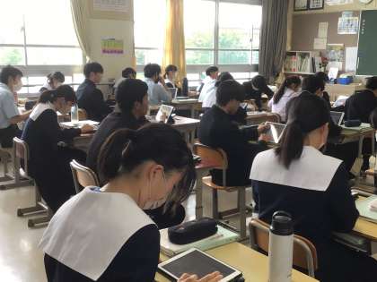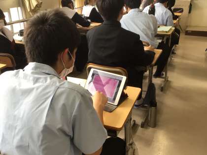 全体で考え方を確認した後、学習用タブレットに送られた問題を考えていました。