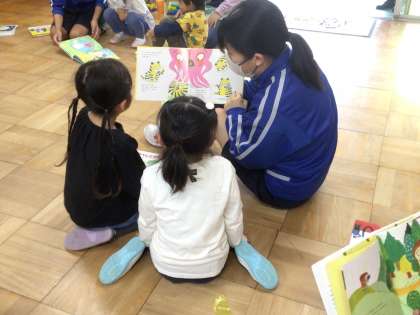 はじめに園児との接し方について園長先生にお話を聞いた後、各教室に向かいました。
