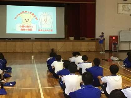 はじめに、心臓突然死で命を落とす方がたくさんいるということを聞き、応急手当ての大切さについて考えました。