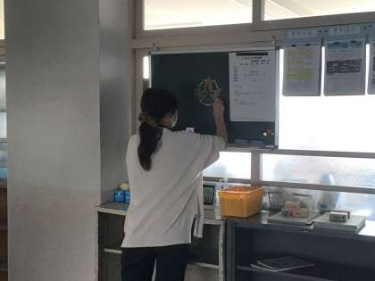 2年生の学年黒板を先生が更新していました。 何が書かれるのでしょうか?