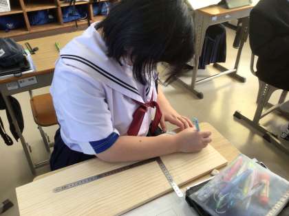 設計図を完成させると、定規やさしがねを使って木材に部品を書いていきます。
