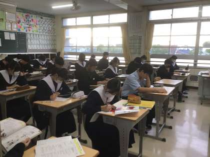 テスト直前、今日の科目の確認をしていました。