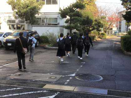 1・2学級の生徒が岡崎公園に向けて出発しました。