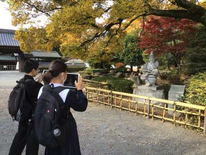 続いて、徳川家康「しかみ像」と産湯の井戸のチェックポイントの写真です。岡崎城内は、紅葉真っ盛りで大変美しいです。次はいよいよ天守に登ります。