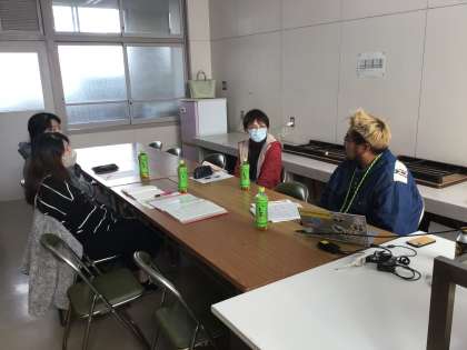 上郷中学校の地域学校共働本部室に、高嶺小と畝部小の地域コーディネーターさんが来てくださいました。