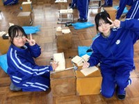 理科の時間、音の伝わり方の実験をしていました。