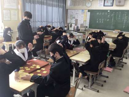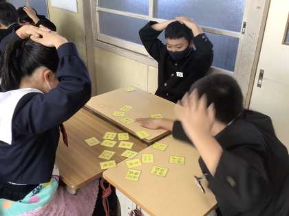 今日は3組が国語の時間に故事成語カルタをしていました。