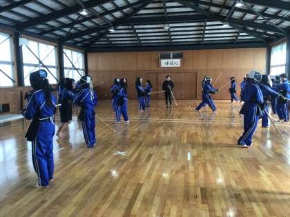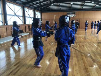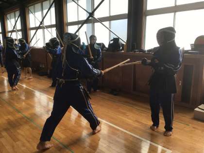 小手の練習では、受ける側の竹刀を小手の高さに構えます。