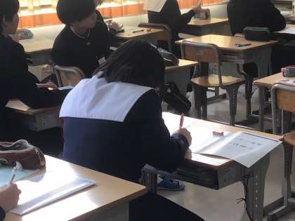 私立や専修の出願に向けて、学校ごとに用意された出願用の下書きシートに必要事項を記入し、確認していました。