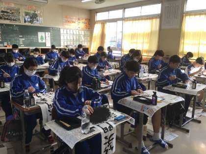 12/11 2年生 書き初め練習
