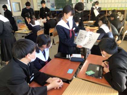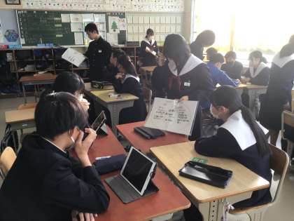 グループで意見をまとめ、他の班に発表しました。