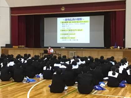 豊田警察署のスクールサポーターの方にお越しいただき、薬物乱用防止教室を行いました。