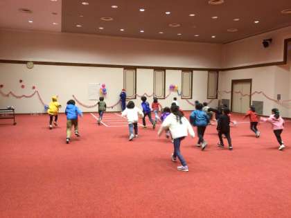 まずはじめに、「だるまさんがころんだ」をして、みんなで楽しみました。