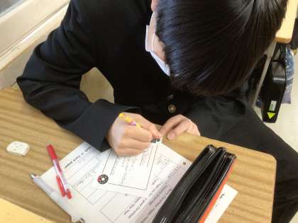 英語の時間にクリスマスカードを作っていました。
