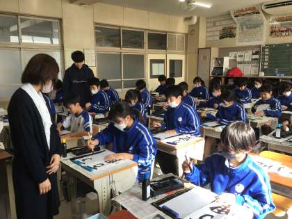 1年生も書き初め練習をしていました。