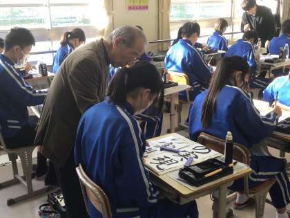 いつも読み聞かせをしてくださっている方が、書道ボランティアとして来てくださいました。