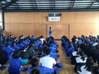 はじめに級長の生徒が前に出て、ウオーミングアップとしてみんなを楽しませてくれました。