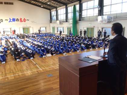 箱根駅伝や春高バレー、高校女子サッカー大会で上郷中学校の先輩が活躍したことを紹介されました。