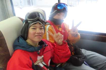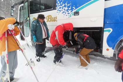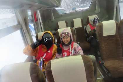 ゲレンデを滑り降りると、シャトルバスで上まで運んでくれました。