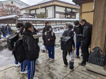 集合時間を近づき、続々と散策から生徒が帰ってきました。