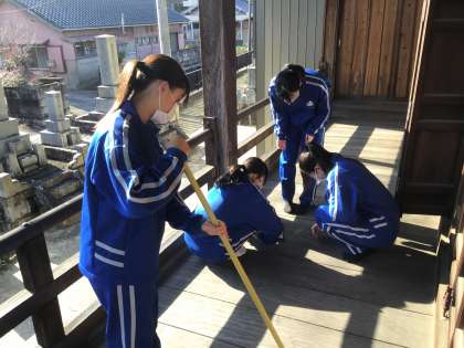 3組の活動です。地域のお寺や神社の清掃活動を行いました。