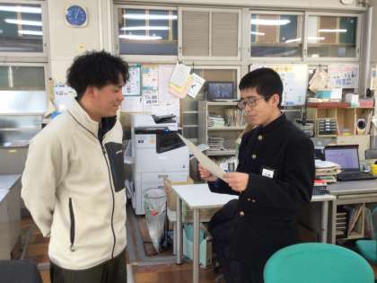 クッキープレゼントを計画しているとのことで、アンケート調査のために職員室を訪れました。
