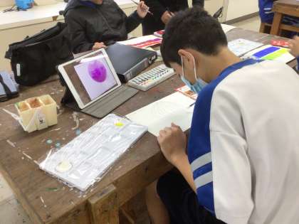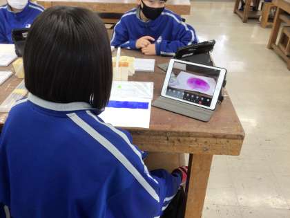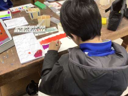 先生が彩色する様子を、学習用タブレットで見ながら説明を聞きました。