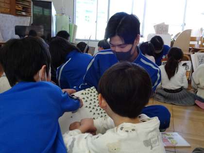 今日は、3年2組が交流に出かけました。