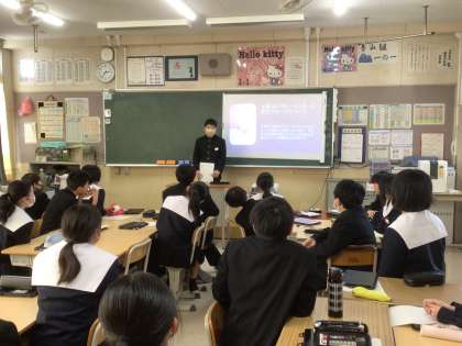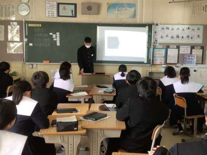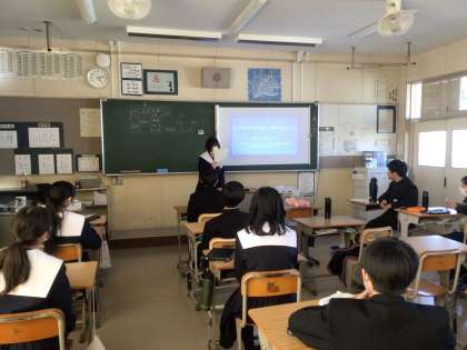 同じ課題のグループの中の代表者が、パワーポイントを使いながら発表しました。